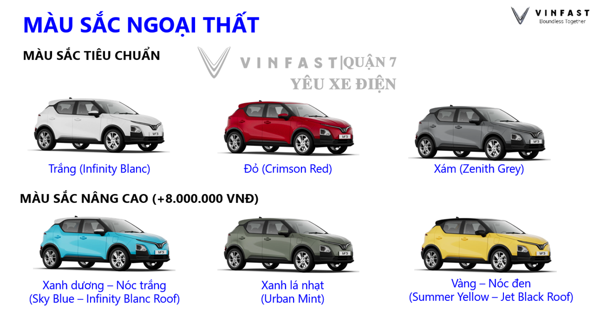 VinFast VF5 là mẫu SUV điện đô thị cỡ nhỏ hướng đến giới trẻ, gia đình trẻ và những người yêu thích phong cách năng động. Với thiết kế hiện đại, nhiều tùy chọn màu sắc cá tính cùng chính sách giá hợp lý, VF5 hứa hẹn sẽ trở thành lựa chọn phổ biến tại Việt Nam.